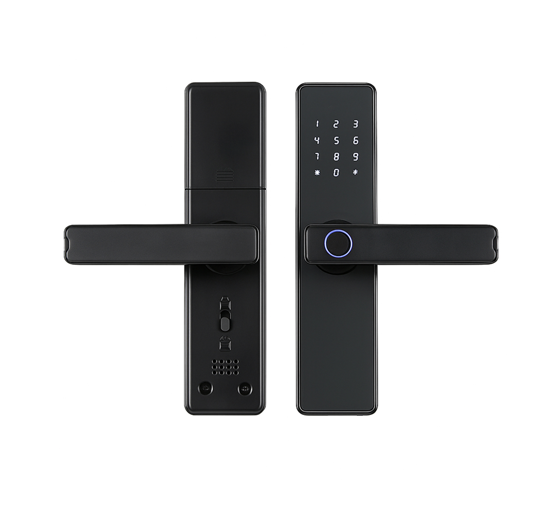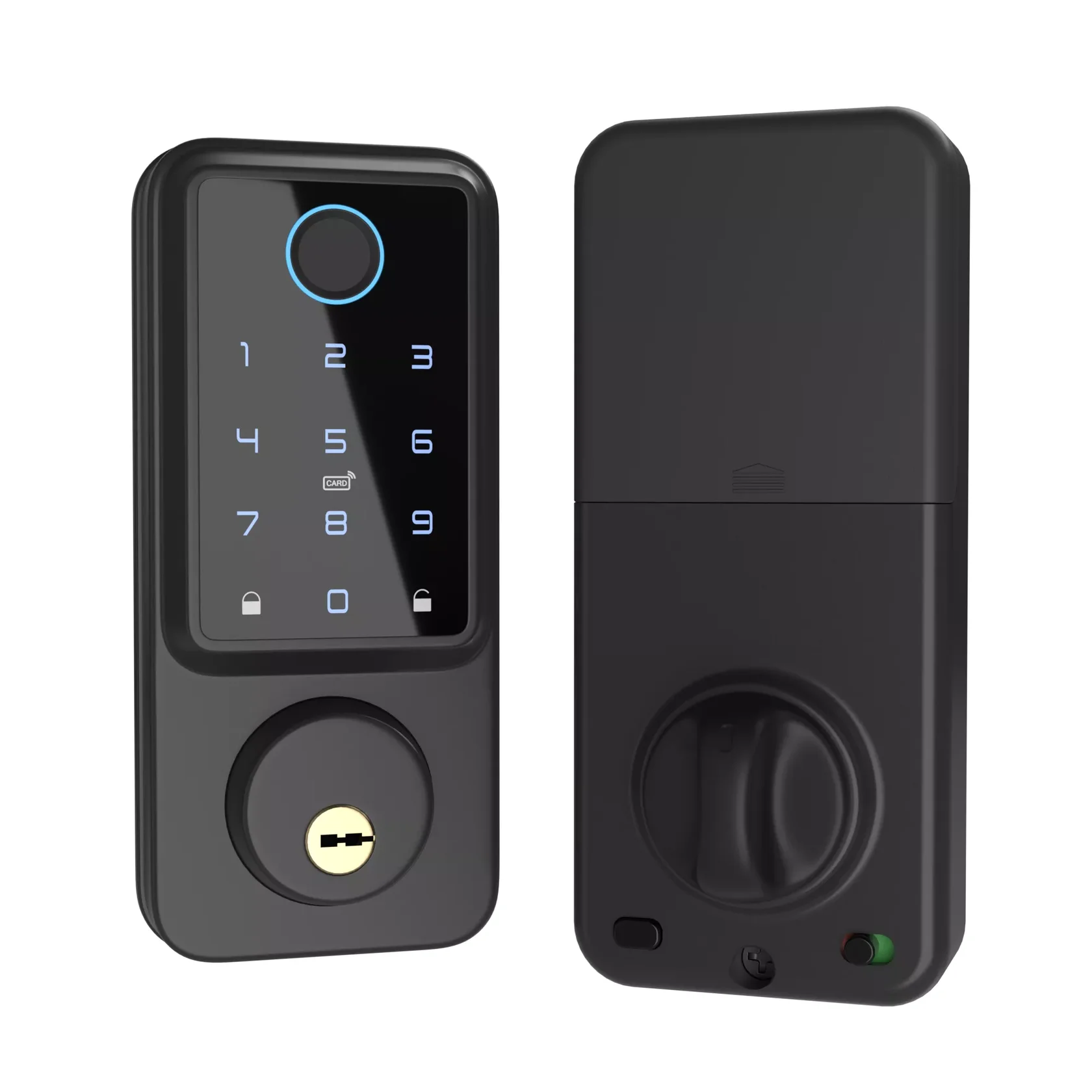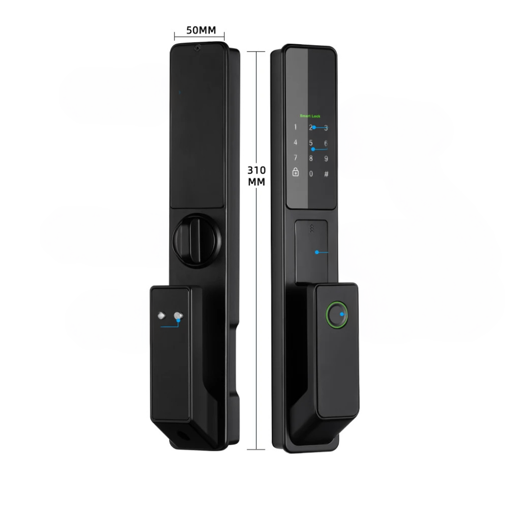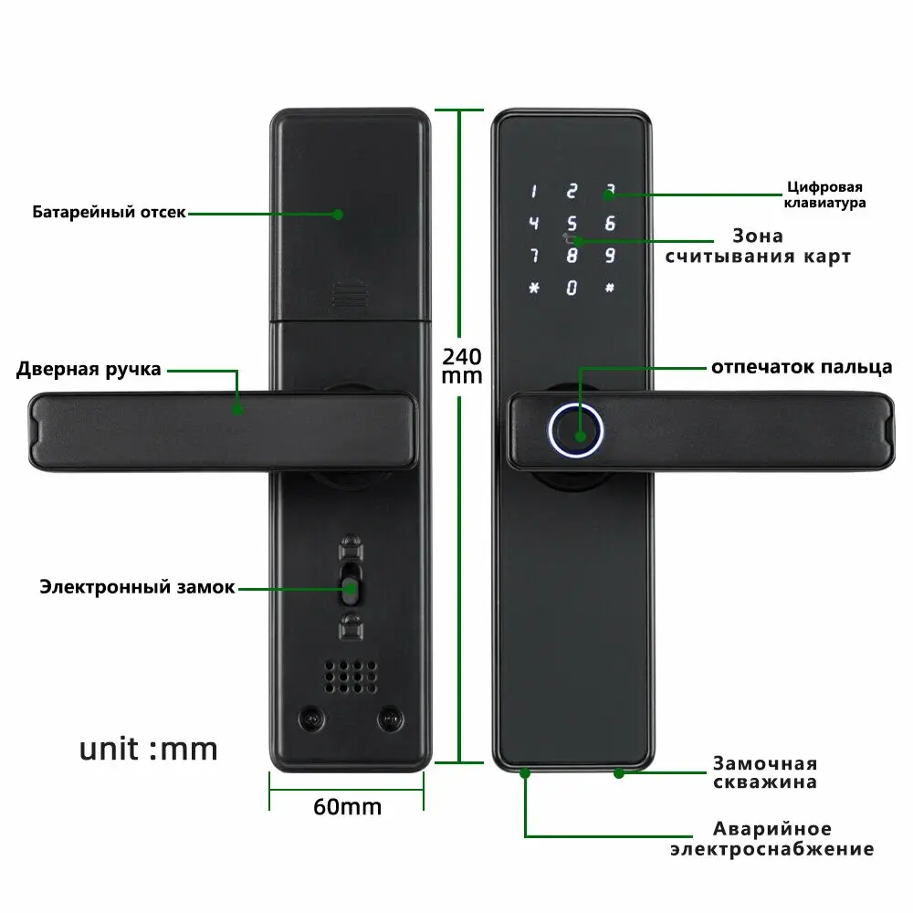 1. Передняя панель матовая и шероховатая, ее нелегко поцарапать. 2. Положение винтов на панели можно гибко изменять, что упрощает установку. 3. 5 методов разблокировки: приложение Tuya/отпечаток пальца/пароль/смарт-карта/разблокировка ключом 4. Управление через приложение Tuya, подключение по Bluetooth, удобно и быстро, прямое добавление или удаление отпечатков пальцев пользователя, паролей, карт в приложении Tuya. 5. Поддерживает подключение к шлюзу, требующему дополнительной покупки. После подключения к шлюзу возможно удаленное управление. 6. Поддержка 9-языковых голосовых систем 7. Внутренняя ручка оснащена электронным замком-выключателем. После открытия разблокировать его может только администратор. 8. Если дверной замок обесточен, вы можете воспользоваться механическим ключом и аварийным источником питания (аварийный источник питания используется только для временной разблокировки и не включает функцию зарядки). 9. Подходит для левых и правых дверей, подходит для толщины двери 30-100 мм. 10. Оснащен дверным замком 28x300 (6068), подходящим для большинства дверей.