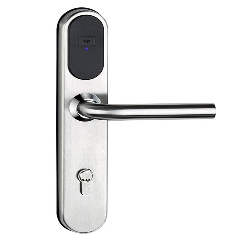 Простой в установке электронный замок на стандартный механический DIN. Работает от 3 батареек AAA, открывается бесконтактной картой снаружи и ручкой изнутри. Поддерживает автономную работу и подключение к сети RS-485. Подходит для офисов и гостиниц, совместим с отельным ПО. Режимы «Офис» и «Отель» с гибким управлением доступом и защитой от копирования карт.